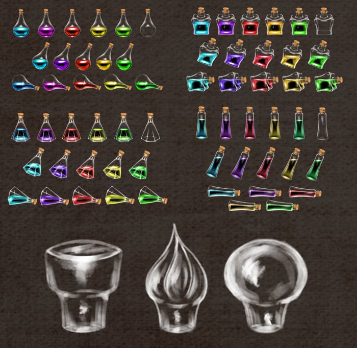 Magic potions art pack for game developers