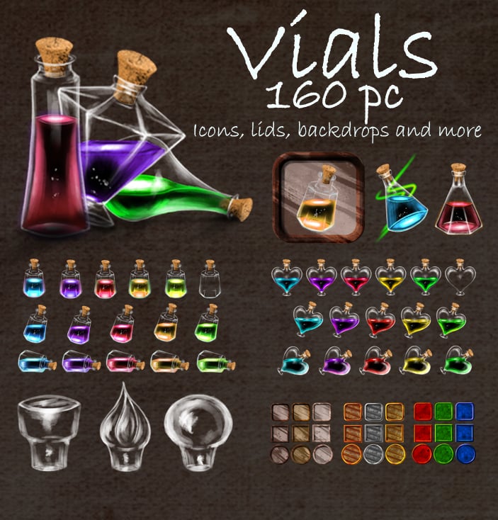 160+ layered high quality (300 dpi) potions, 2D effects and buttons