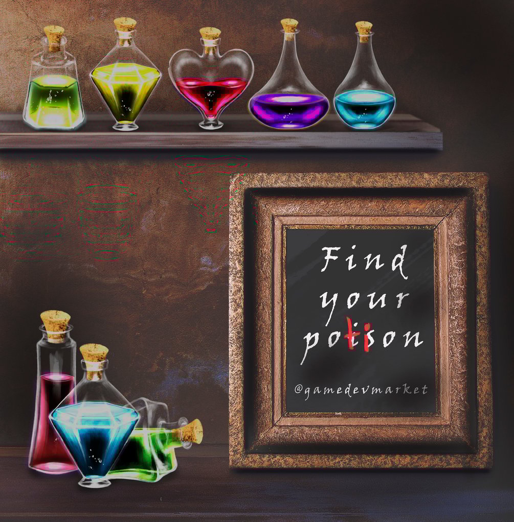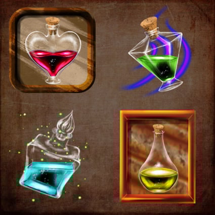 160+ layered high quality (300 dpi) potions, 2D effects and buttons